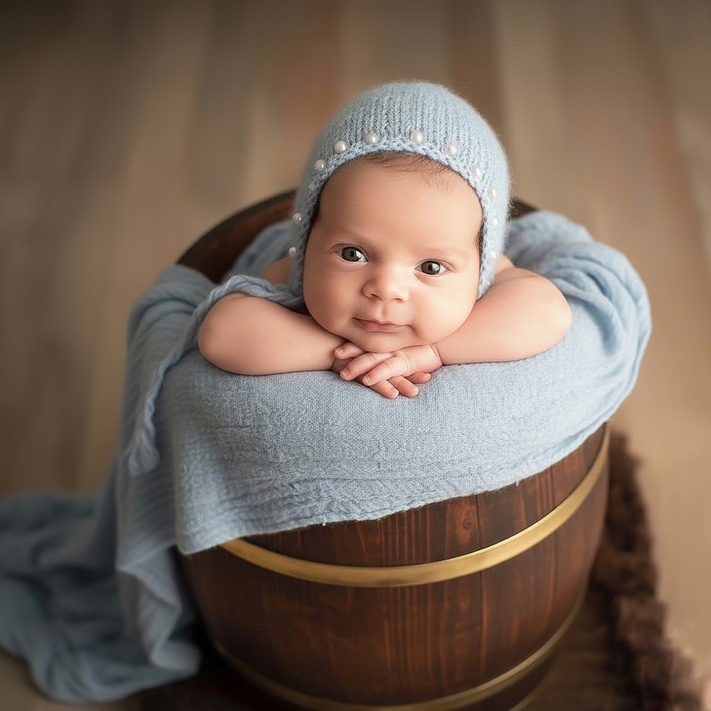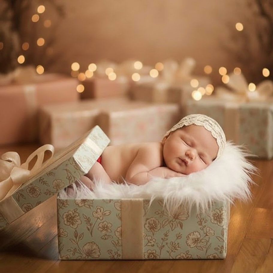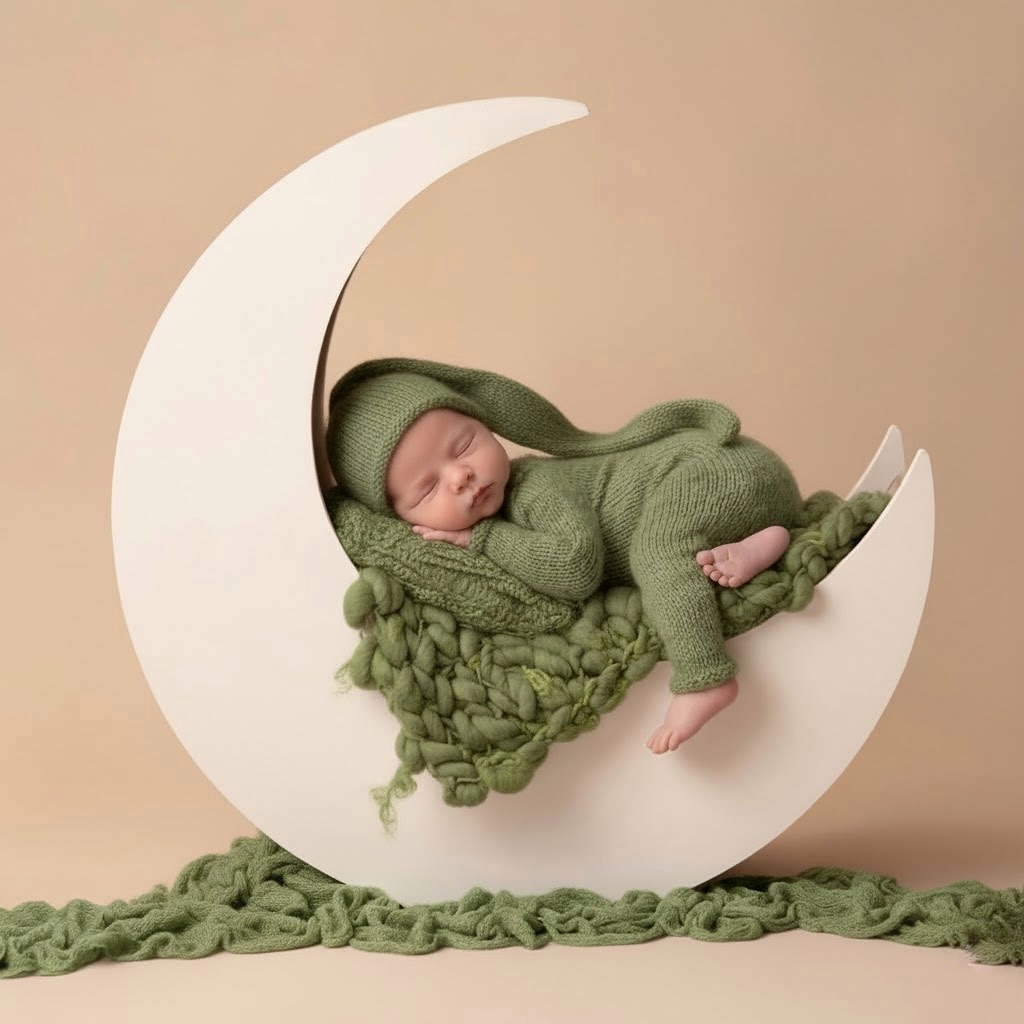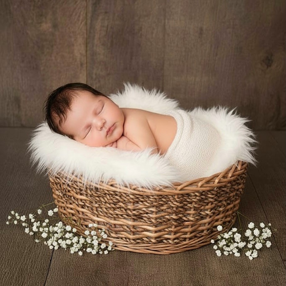 • Posado (estudio): se realiza en un estudio con fondos, mantas, cestas y accesorios. El bebé es colocado cuidadosamente en poses específicas.